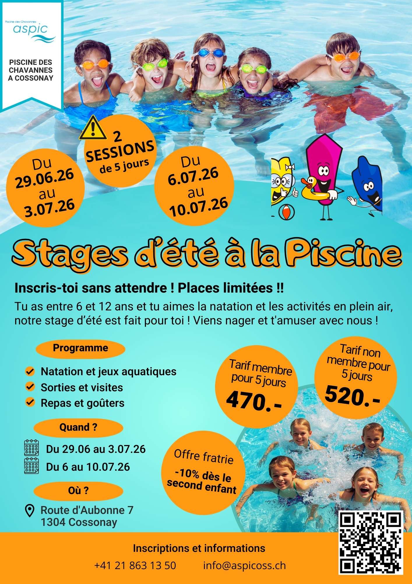 Piscine des Chavannes – stage d’été 2026