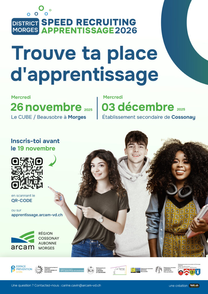 Deux sessions sont ouvertes aux élèves du district, mercredi 26 novembre 2025, de 13h30 à 17h au Cube (Beausobre) à Morges et mercredi 3 décembre 2025, de 13h30 à 17h dans l’Établissement secondaire de Cossonay.
